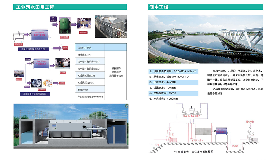 設(shè)備為連續(xù)過濾,當(dāng)滾筒內(nèi)有水進(jìn)入時(shí),自控系統(tǒng)將啟動(dòng)驅(qū)動(dòng)系統(tǒng)驅(qū)動(dòng)滾筒轉(zhuǎn)動(dòng),同時(shí)啟動(dòng)反沖洗泵。滾筒開始緩慢轉(zhuǎn)動(dòng),反沖洗泵抽取濾后出水對濾網(wǎng)進(jìn)行反沖洗。沖洗下來的顆粒物質(zhì)由設(shè)備內(nèi)部的反沖洗水收集槽收集,并通過排污管排出設(shè)備。反沖洗的同時(shí),過濾正常運(yùn)行。當(dāng)無水通過設(shè)備時(shí),設(shè)備將自動(dòng)停止。