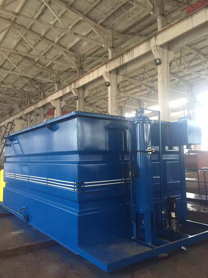 整個裝置由污水泵、計量裝置、加藥箱、反應槽、氣浮槽、氣浮系統(tǒng)、砂濾器、活性碳吸附柱及電控系統(tǒng)組成,10t/h以下組合于同一基座,10t/h以上為方便運輸由散件到現(xiàn)場組裝成整體,可根據(jù)用戶要求(非標)設計。當整個裝置調(diào)整至正常工作后,基本可處于自動運行狀態(tài),操作方便。